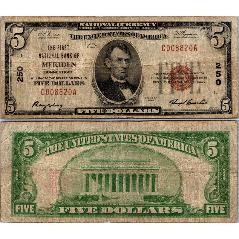 5 dollars National Bank - MERIDEN - Connecticut - Serie 1929 - C008820A