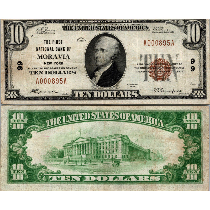 10 Dollars National Bank - MORAVIA - New York - Serie 1929 - A000895A