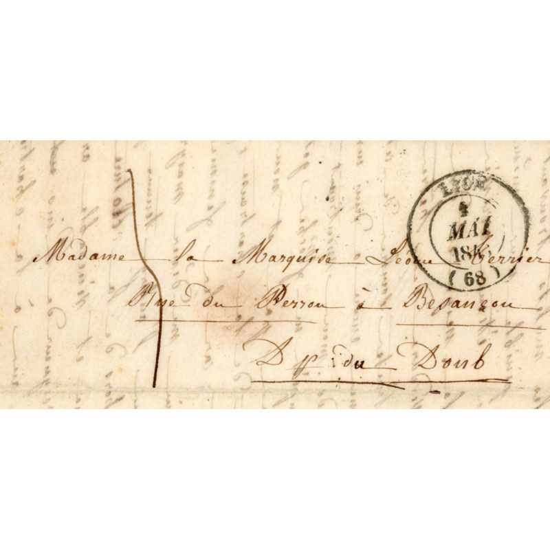 Cachet d’origine : cercle noir LYON 4 MAI 1848 (68)