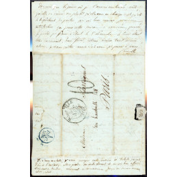 Système postal : Avant l’introduction du timbre-poste (qui n’apparaîtra qu’en 1849 en France). L’expéditeur ne payait pas nécessairement l’affranchissement ; ici, le port est payé à l’arrivée par le destinataire.