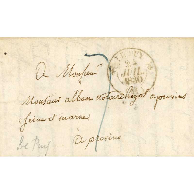 1830 – Lettre manuscrite du Puy à Provins (Seine-et-Marne) – adressée à un notaire royal – Cachet noir circulaire « LE PUY » – préphilatélie