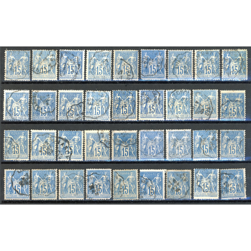 Lot de 36 Sage 15 c. Bleu - Belles Obliterations