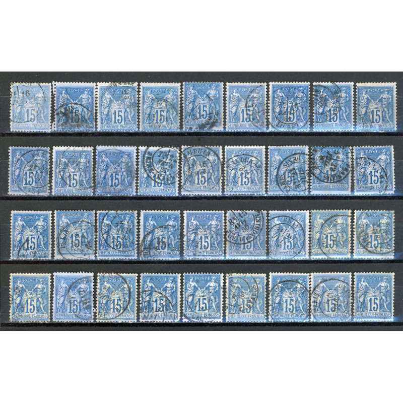 Lot de 36 Sage 15 c. Bleu - Belles Obliterations